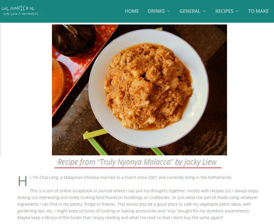 许多菜都具其独异处,按图索骥不外肇始当地风味与特色,只要离开原乡,纵使仿效,仍会不及正宗标准,因缺乏道地风土人情跟土产造就。这即是各别土生华人菜宗有所偏差因由。上图荷兰籍华裔据食公子食谱《马六甲娘惹味》烩制的一道叁巴猪肉,在某种意义上当想到娘惹菜,就会想到马来西亚以及大马的那位美食家所著食谱。 / 图片来源:《食公子经典》