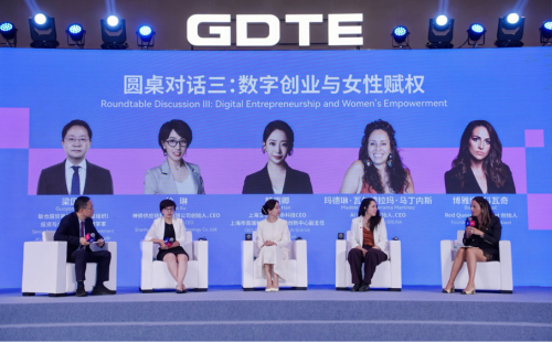 第三场圆桌对话的主题是“数字创业与女性赋权”,由联合国贸易和发展(贸发组织)投资与企业司资深经济学家梁国勇主持,对话嘉宾为神骅供应链科技有限公司创始人、CEO徐琳,上海艾尔温生命科技CEO、上海市高端科学仪器技术创新中心副主任韩雨卿,AI BRUNA 创始人、CEO玛德琳·瓦尔德拉玛·马丁内斯,Red Queen Mediaset 创始人博雅娜·科瓦奇。