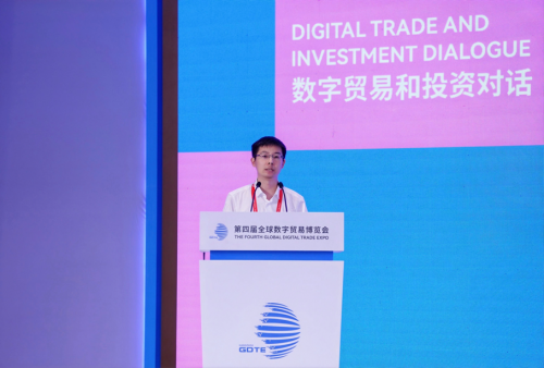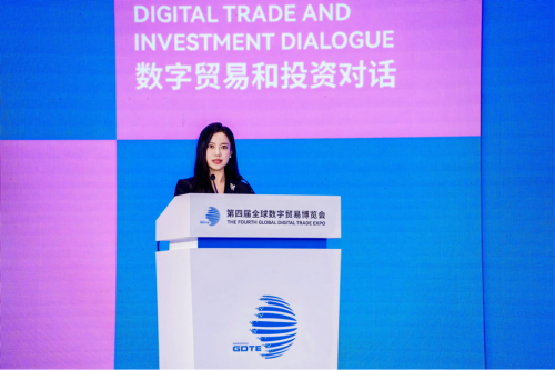 9月26日,第四届全球数字贸易博览会数字贸易与投资对话在杭州大会展中心成功举办。商务部党组成员、副部长盛秋平,财政部经济建设司司长郭方明,杭州市委副书记、市长姚高员,招商局集团有限公司董事长缪建民,联合国可持续证券交易所倡议主席、联合国贸易和发展(贸发组织)投资与企业司司长李楠出席并致辞。