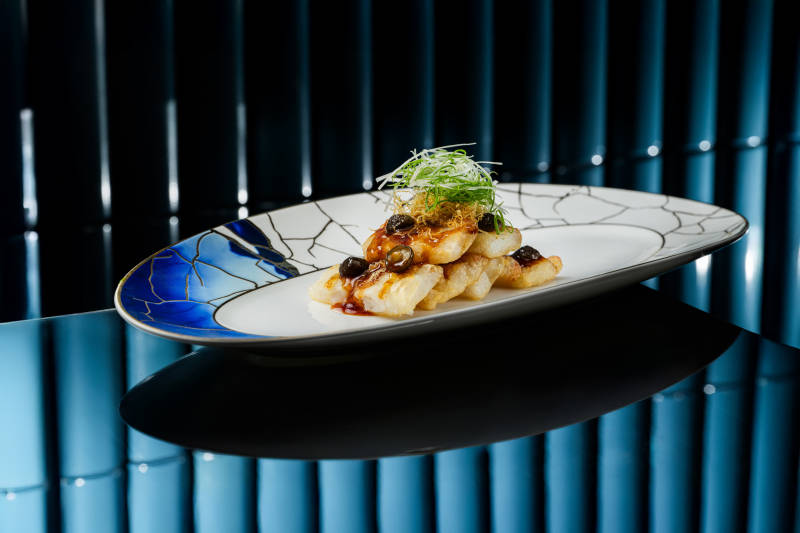 以粤菜经典技法处理西方食材,体现“中技西材”的文化融合。主厨以传统粤菜经典的油泡手法,处理来自西澳洲的龙虾,并以细腻切片确保口感一致与视觉美感,成就对传统的奢华演绎。