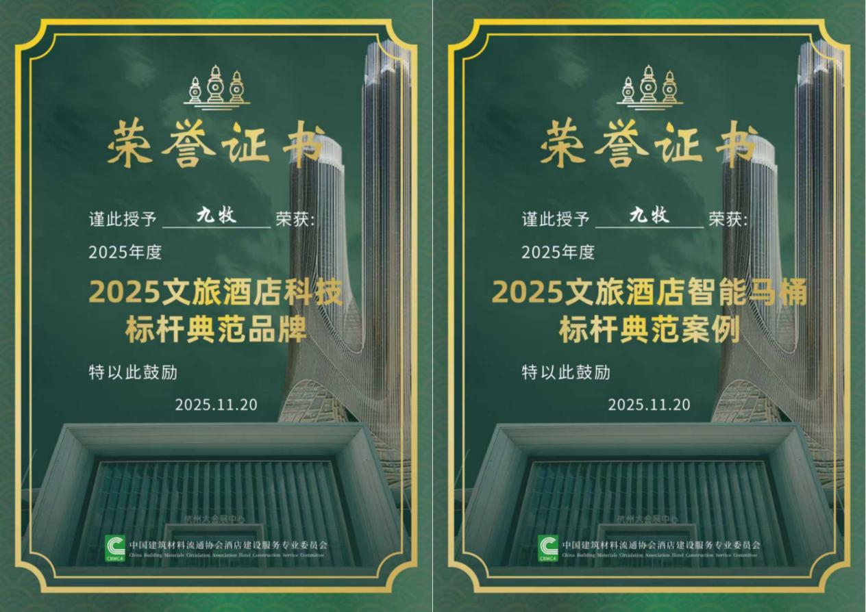双项殊荣加冕:九牧荣膺文旅酒店智能卫浴“双标杆”典范