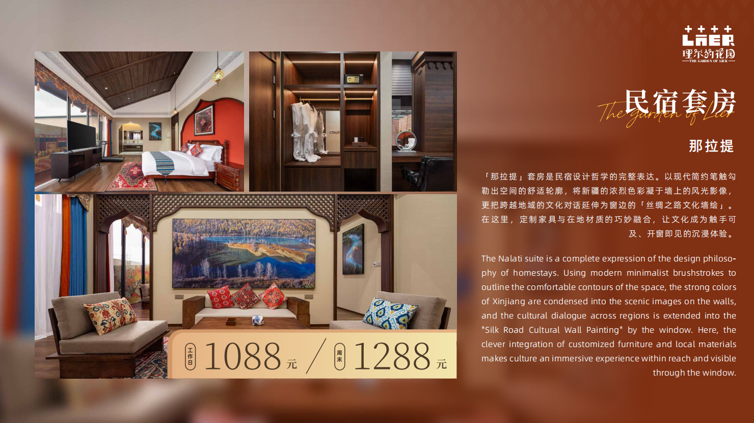 国庆期间,民宿天天满房,众多游客专程前来体验新疆风情,亲子游家庭成为主力客群。目前一期主打高端定制,配备了恒温泳池、萌宠亲子疗愈和运动健身等设施;二期计划扩建8至10间平价客房,可以让更多游客能够体验这份独特的新疆风情。